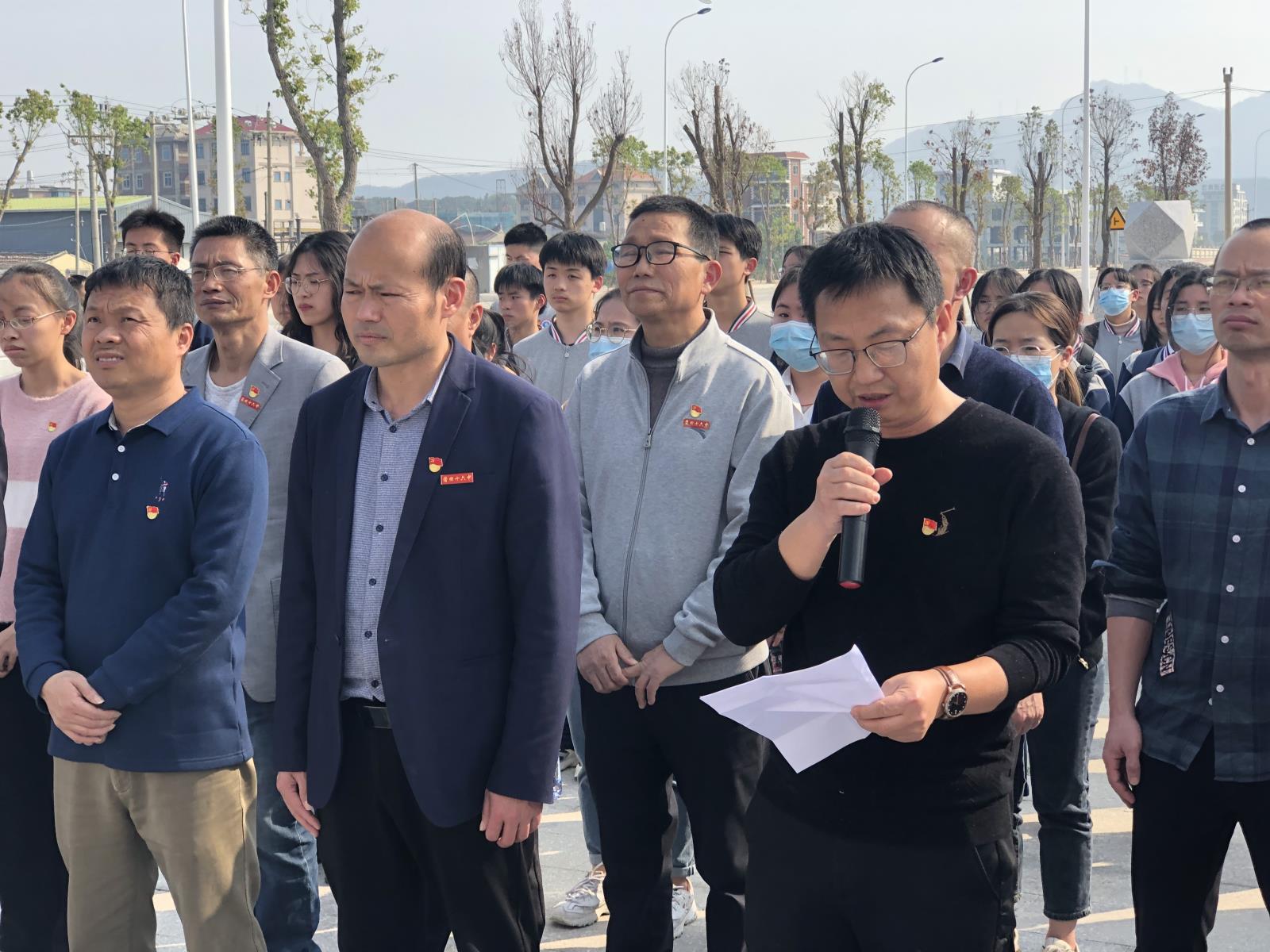 站在庄严肃穆的烈士纪念碑前,十六中全体党员和团员肃立,静默致哀一分钟,缅怀革命先烈,寄托哀思。